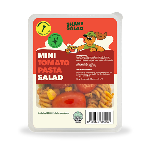 Ingredients: Fusilli Pasta, Edamame, Corn Kernel, Cherry Tomatoes, Tomato Paste, Japanese Mayonnaise, Garlic, Oregano, Thyme, Salt, Sugar, Black Pepper