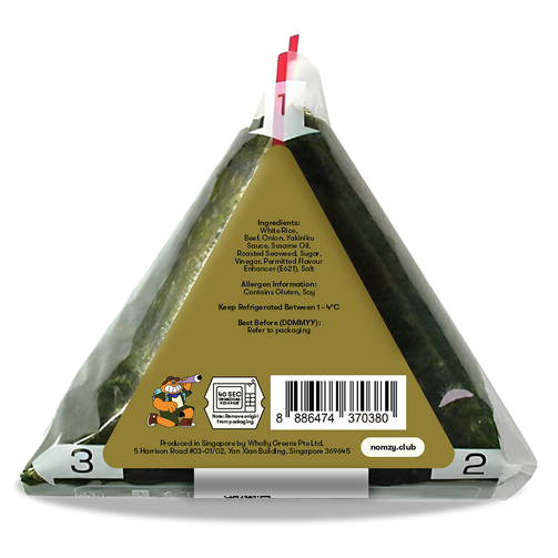 Ingredients: White Rice, Beef, Onion, Yakiniku Sauce, Sesame Oil, Roasted Seaweed, Sugar, Vinegar, Permitted Flavour Enhancer (E621), Salt