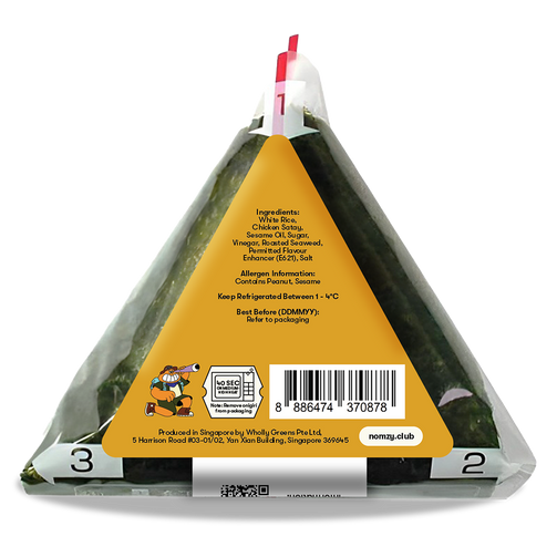 Ingredients: White Rice, Chicken Satay, Sesame Oil, Sugar, Vinegar, Roasted Seaweed, Permitted Flavour Enhancer (E621), Salt