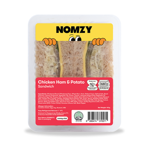Ingredients: Wholemeal Bread, Potato, Tomatoes, Japanese Mayonnaise, Chicken Ham, Cheddar Cheese, Romaine Lettuce, Salt, Black Pepper